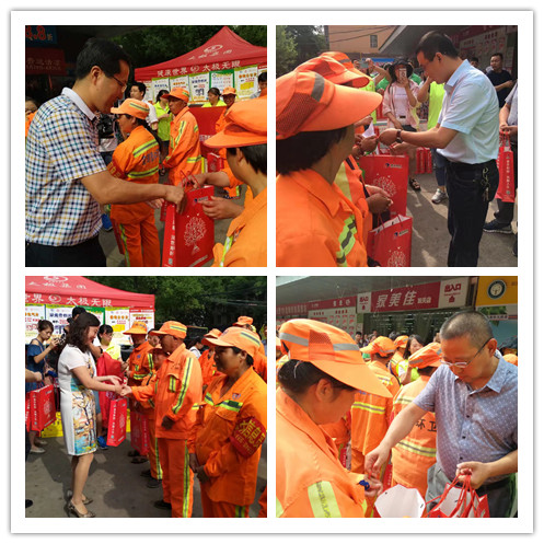 有这样一群人,他们用勤劳的双手,为我们的工作和学习增添了舒适和愉悦;他们冒雨迎风去,披星戴月归;晴天一身灰,雨天一身泥,恪守了"脏了我一人,洁净千万家"的信念,在平淡的工作中,以实实在在的行动担当起一份令人尊敬的责任。他们就是城市的美容师—广大环卫工作者! 为了表达对环卫工人的关爱之情,2017年6月20日,由中共乐鱼leyu(中国)党总支和陕西辰济大药房有限公司、宝鸡市金台园林环卫管理处联合承办“关爱环卫工辰济惠万家”公益活动;陕西中远医药有限公司、陕西博鸿医药有限公司、修正药业集团营销有限公司斯达舒事业部、仁和中方医药股份有限公司等业务单位协办,活动在辰济大药房西关店隆重举行。 活动开始后,由公司党总支副书记、总经理助理王静,辰济大药房总经理刘明、金台园林环卫管理处等主办方领导为此次活动致辞。王书记在讲话中代表乐鱼leyu(中国)全体员工向全市环卫工人朋友表达真挚的感谢!感谢她们长年发扬“宁愿一人脏、换来万人洁、无私做奉献”的优良作风,美化、绿化、净化了我们的城市。借此机会公司为大家准备了抗酷暑的物品,希望能尽我们绵薄之力,在这个夏天给我们最美丽的人带来一些凉意!同时,王书记也代表公司全体员工承诺:不乱丢垃圾,爱护环境,从小事做起,从自己做起,为宝鸡的市容美丽奉献自己的一份力量! 随后,各位领导以及志愿者们为现场环卫工人分发了礼品。环卫工人们接过一份份悉心准备的礼物,开心不已,明朗的笑容映在脸上,感谢之语不绝于耳“真心感谢辰济药业送的礼品,让我们在这个炎热的夏天,能有效地防暑降温”。 宝鸡电视台也对本次活动全程关注,并对辰济大药房刘明总经理进行了采访,刘总表示:紫光辰济多年来一直致力于健康与公益事业发展,秉承着“辰光泽惠,德润天下,济世康民,关爱生命”的企业理念。环卫工人是我们城市的美容师,不论春夏秋冬,严寒酷暑,都坚定的在自己的岗位上为我们这座美丽的城市增光添彩。希望通过此次活动,能让更多的人来关注到环卫工人,能让大家对于城市环境有一个好的保护,能让我们的环卫工人得到更多的关爱。 在本次活动中,乐鱼leyu(中国)及陕西辰济大药房有限公司为环卫工人总共发出了近千份,总价值80000元的防暑降温礼品。公司将会一直秉承清华大学“厚德载物”理念,为宝鸡地方经济的发展尽自己的微薄之力,今后将会一直积极致力社会公益事业的发展。
