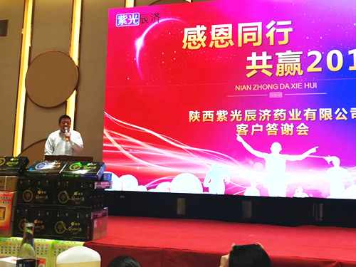 ——紫光辰济药业销售二部春季VIP答谢会 为了做好2018年销售市场布局,全面扩大销售市场规模,2018年4月14日上午,公司销售二部于宝鸡市宴会中心举办春季VIP答谢会。 活动邀请到公司多年来长期合作的128家重点客户以及经销商参加。 会上,公司常务副总经理肖红星首先为本次活动致辞,感谢来自宝鸡市县各区的客户以及经销商多年来对紫光辰济药业的支持与信赖,今后公司将不断推出适销对路的优质产品,满足市场和消费者需求,全力打造医药健康事业,希望广大客户一如既往的支持公司产品销售,携手共进,共同发展。 接着,销售二部培训专员刘宇华为参会者详细的讲解了公司的新推产品。辰济大药房相关代表也就医药连锁行业如何提高销售进行了分享交流。客户代表在听取了讲解和分享后,纷纷表示,紫光辰济药业作为宝鸡市地区的医药龙头企业,在消费者心目中有着良好的口碑,相信随着公司的发展,未来的销售市场一定会更加广阔,公司与各经销商会有着更好更多的合作平台,一同将紫光辰济的品牌打响,将销售的规模持续扩大。 随后,晚宴开始,现场气氛热烈,在精彩的演出表演中,大家兴致勃勃,充满着欢声笑语,绚丽的灯光,照亮的是大家对未来美好合作期待的笑容,热烈浓郁的欢呼,承载的是大家心中永恒不变的激情热血,合作共赢,共创辉煌,是每个人心中最真挚的祝愿。 会议当中,销售二部与各市县的客户、经销商们共签订了60多万的经销合同。为销售二部在宝鸡地区的销售又打下了坚实的基础,为今后的市场开拓做出了先锋作用。公司财务总监张学彬、副总经理李继虎、总经理助理王静也应邀出席了本次答谢会。