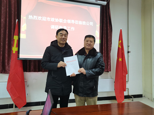 2021年1日7日上午,联企领导市政协张望主席一行莅临我司开展工作调研,并与我公司高层领导进行座谈,宝鸡市政协文史办张辉主任全程陪同进行观摩和交流。 会上,副总经理王静宣读辰济药业公司对于政协委员会帮扶的《感谢信》,在座谈现场代表辰济药业全体干部员工感谢张望主席在“西关土地使用证更名”事宜中给予的大力帮扶,急企业所急,想企业所想,帮助企业解决多年来历史遗留问题。副总经理刘明重点汇报了公司“紫光辰济(宝鸡)医药生产基地项目”的建设情况,表示项目已列入宝鸡市十四五发展规划,项目建设还需要市级政府各部门领导们的大力支持与关注,目前项目正在按计划顺利实施。 最后,总经理王睿成就辰济药业2020年的生产经营情况以及公司2021年的重点工作计划向在座领导作了详细汇报,感谢市委领导对企业的关心和支持,企业一定积极响应市委、市政府的号召,2021年坚定信念,加快创新步伐,提升核心竞争力,在取得抗击疫情战役胜利的同时更好的完成2021年的目标任务! 张望主席听取完汇报后,对辰济药业今后的发展规划提出建议,并希望大力发展自主创新,打造辰济品牌效应,不断提升综合实力,争取领先同行业,为宝鸡经济高质量发展贡献力量。