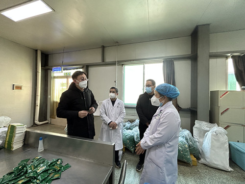 12月23日上午,宝鸡市市场监督管理局党组成员、副局长崔效辉、市局药品生产科副科长王新青、市局医疗器械科科长张永鸿一行专程来到乐鱼leyu(中国)调研指导疫情保供产品生产运营情况,公司总经理王睿成、常务副总经理肖红星、质量受权人王静等陪同调研。