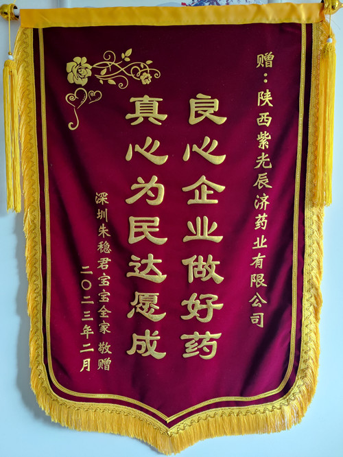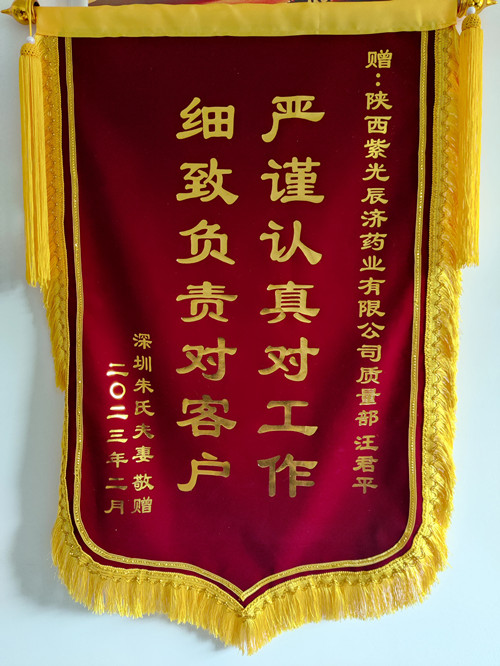 2023年元宵节刚过,正在忙碌上班的汪总工再次接到了陈女士的信息:汪部长,很不好意思,宝宝满月那天就想做面锦旗送给你们,以表达我们的感恩之情,但因后来一段时间深圳疫情严重,我们一家全阳了,忙于治疗和修养,时间耽误了。刚一过年我们就制作了锦旗,今天快递已送到贵公司门卫处,请查收。 打开包装精美的长条型方盒,展开两面烫着金字的旌旗,一方系赠乐鱼leyu(中国):“良心企业做好药,真心为民达愿成”;另一方赠技术总工汪君平:“严谨认真对工作,细致负责对客户”。医者仁心,看着金光闪耀的锦旗,汪总工眼眶有些润湿了。金杯银杯不及老百姓的口碑,这锦旗不仅是对培坤丸疗效的肯定,更是对紫光辰济这个百年老字号药企的认同和赞誉啊! 尽小者大,慎微者著,百年来紫光辰济人脚踏实地,守牢质量底线,用工匠精神坚持做好药,为人民,以疗效确切的产品赢得了消费者的良好口碑;未来发展之路上,紫光辰济将继续做好药品生产,充分发挥中医药的独特优势与作用,守正创新,不断进取,为人民健康提供坚实的保障。