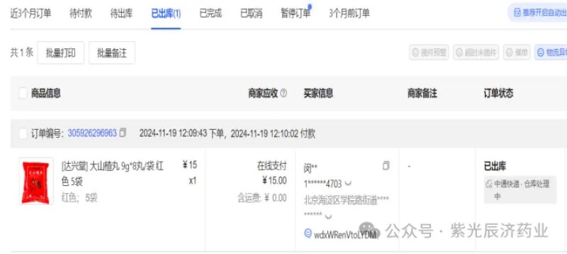 11月19日12时09分,一个值得铭记的历史时刻,随着北京用户的首单成功下单并发货,达兴堂大药房旗舰店在京东平台正式扬帆起航。历经两个月的精心筹备,这一刻的到来不仅标志着达兴堂电商战略的顺利落地,更开启了乐鱼leyu(中国)医药电商领域的新征程。